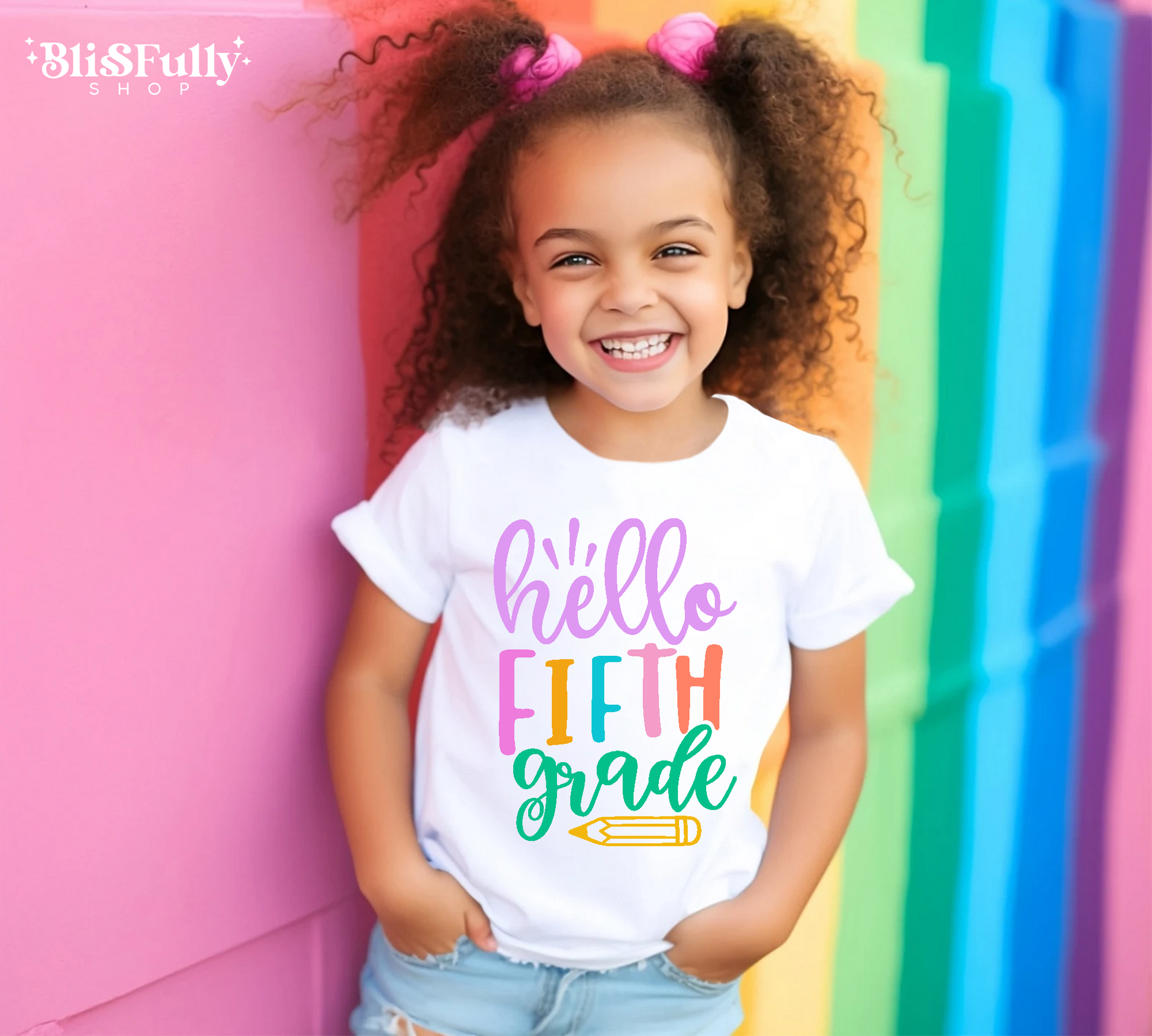 Welcome to 5th grade in style with our Hello 5th Grade Shirt!